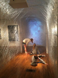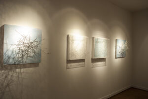 I am fascinated with the mind; the connections and pathways that develop through experience into convoluted structures. Scientists describe how emotions are imbedded in memories, which make humans “imperfect machines”. Understanding how people make decisions, based on emotional experience, informs my work, how a web of thought develops. My work compares mathematics, or non-emotional problem solving, against the decisions based on opinions. Collective thought forms societal shifts. This is another aspect that I like to grapple with in my work; the power of public opinion.